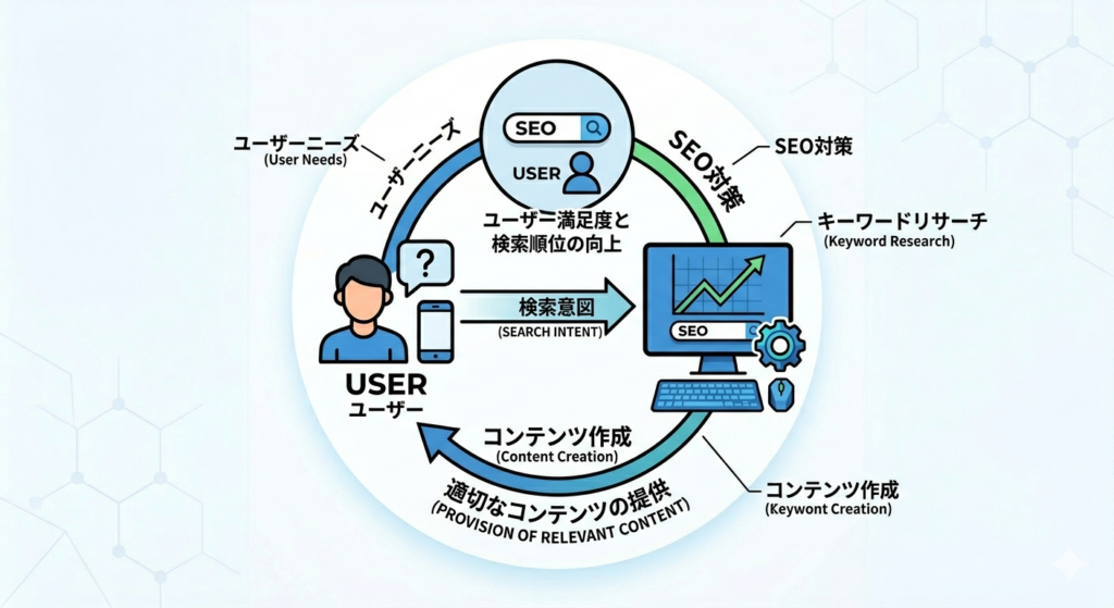 SEOとは、一言で言えば**「検索エンジンという高度なAIに対し、自社の情報が最も有益であると正しく伝えるための最適化作業」**を指します。
