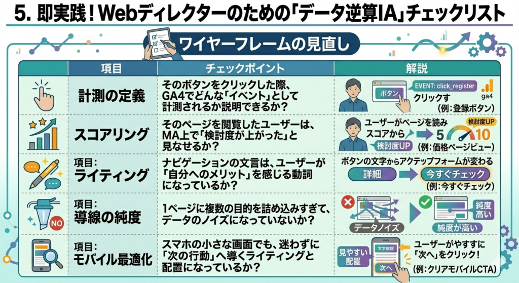5. 即実践!Webディレクターのための「データ逆算IA」チェックリスト